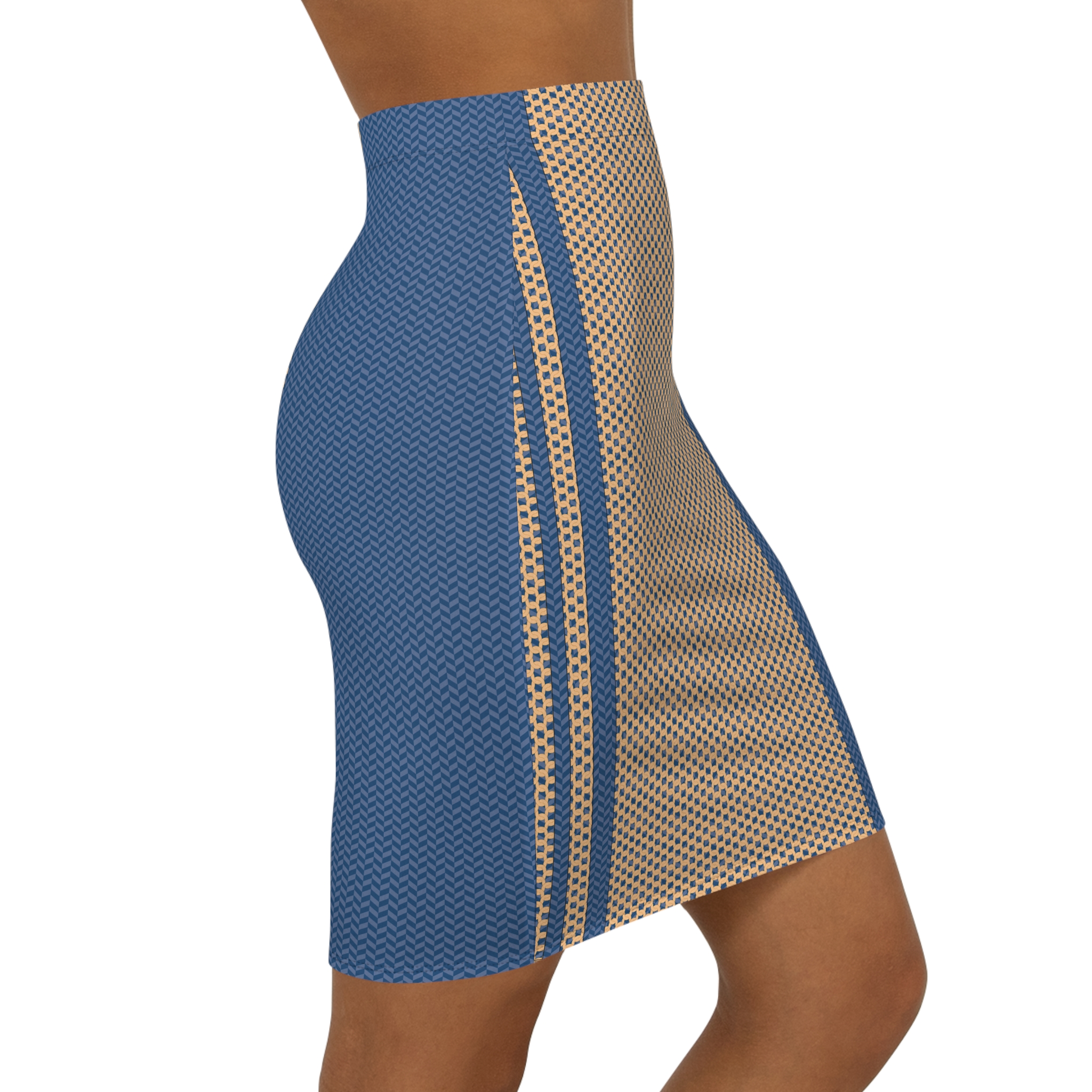 “Cobalt Terra” Women’s Mid-Waist Pencil Skirt